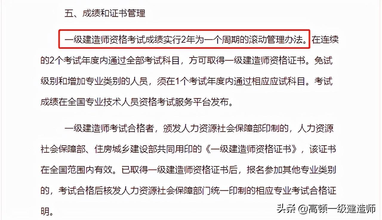 一级建造师考试科目四科,考生需要在两年内完成所有科目考试,具体要求如下图所示: