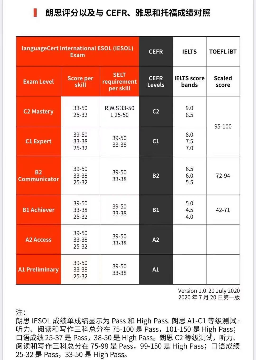 1、朗思国际通用英语测评 LanguageCert International ESOL(简称:朗思 IESOL)是核心测评产品 (他有IESOL和SECT版本,文章后半部分有解释)。这个考试具有广泛的国际认可、灵活快捷的考试安排、以及考试内容与实际场景的极高的关联性。
