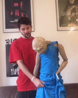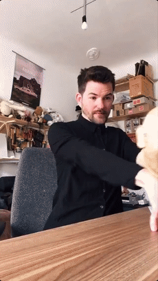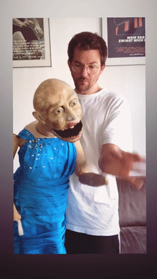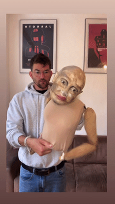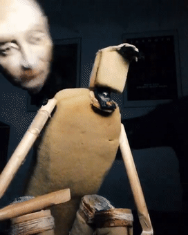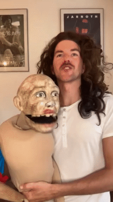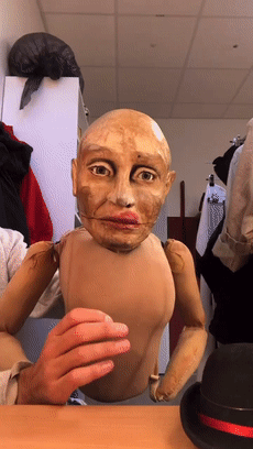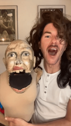 而可能就是专业的舞台经验,为他积累了足够强的技术,能够赋予造型独特诡异的木偶生命,让「木偶搭档」在网友眼中成了活人,并在一片惊吓声中人气越来越高。