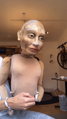 有的表演看着也很伤感,例如木偶用自己的大脑袋打量着自己的身体: