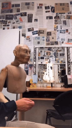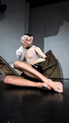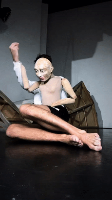 当他的手臂与木偶的手臂绑在一起,木偶和人就仿佛开始共用一个大脑,操控两个身体。