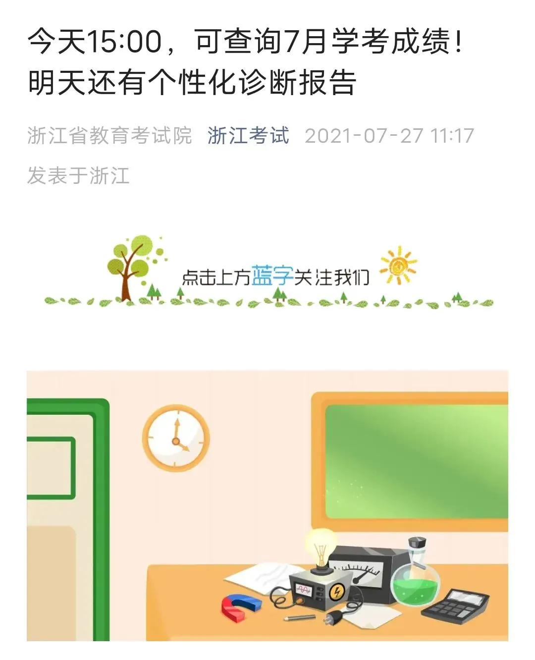 微信用户可进入浙江考试公众号“招考查询”菜单,凭本人身份证号和准考证号查询自己的考试成绩。