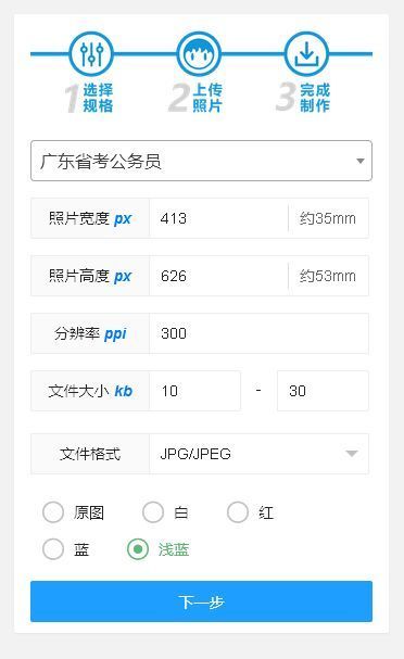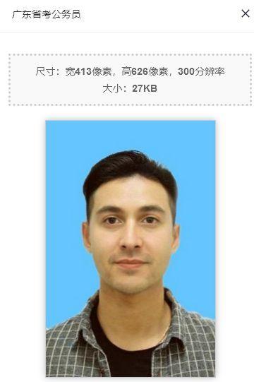 广东省公务员考试报名要求使用近期拍摄的标准白底、红底、浅蓝底、蓝底半身免冠正面证件照(像素413px*626px,文件大小在10K-30K之间,严禁使用相貌相差较大的旧照,或者翻拍纸质证件照作为电子版使用。
