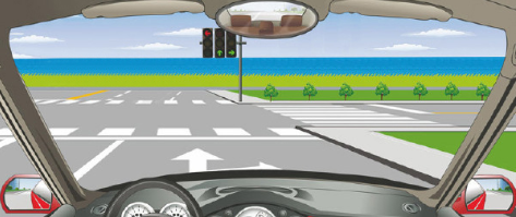 [67/100] 如图所示、驾驶机动车在路口遇到这种信号灯应该如何行使