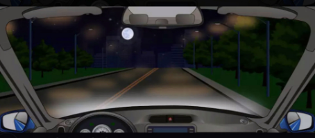 [88/100] 夜间行车中,前方出现弯道时,灯光照射会发生怎样的变化?