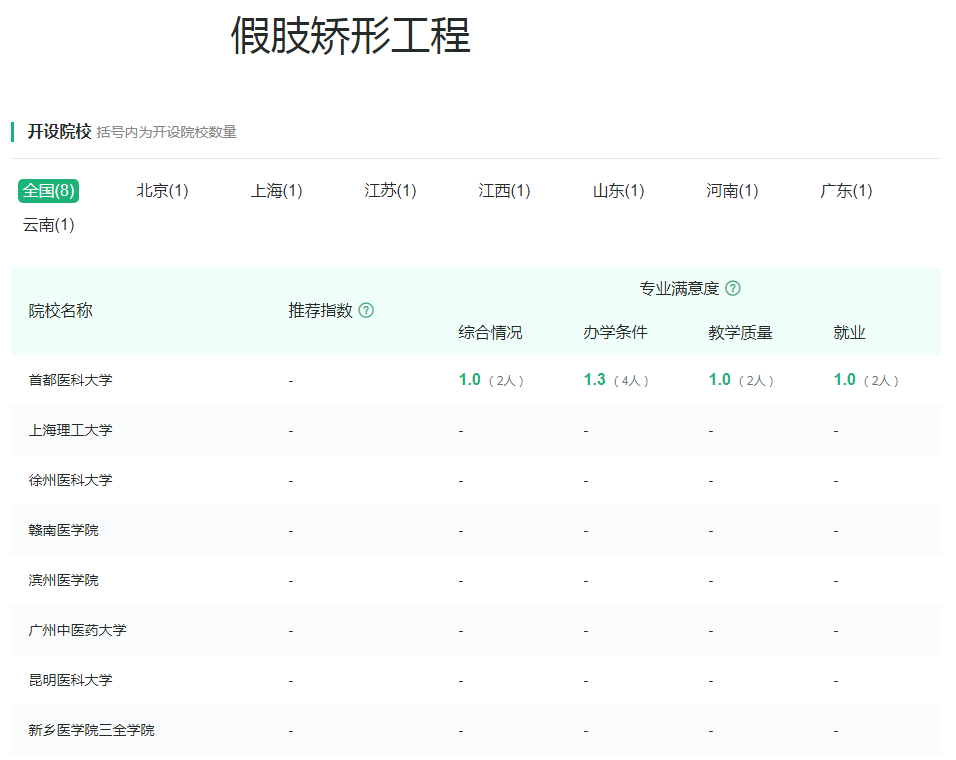 当然这种局面很快就改变了,到2012年专业目录调整时,生物医学工程类独立了出来,并拥有了自己的特设专业——假肢矫形工程。