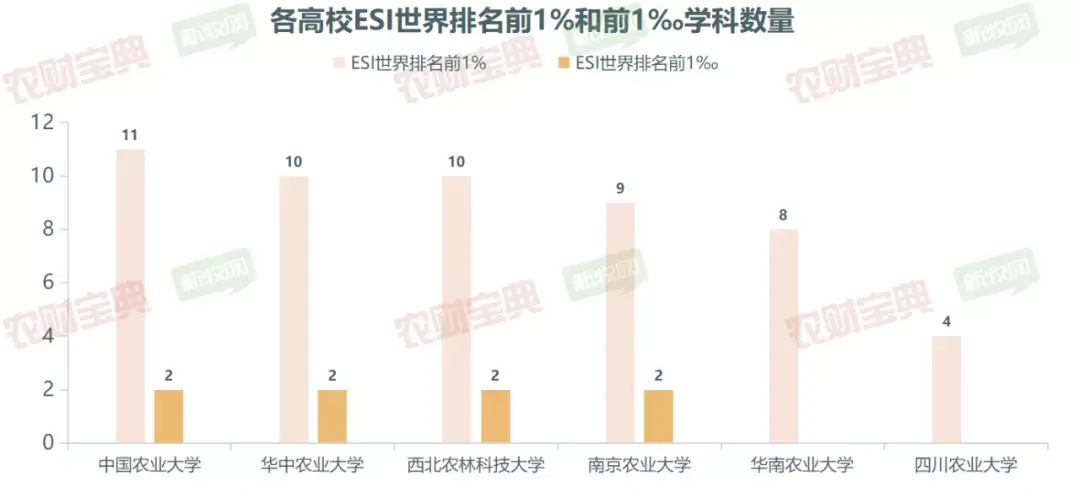比较国家重点学科与重点(培养)学科数量,中国农业大学一枝独秀,以13的成绩傲视群雄。综合来看,多所大学的农业科学、植物与动物科学等专业都具有强劲的实力,多所学校进入ESI世界排名前1%,西北农林科技大学和南京农业大学更是进入了ESI世界排名前1‰。
