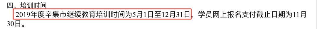 2019年度辛集市继续教育培训时间为:5月1日-12月31日。