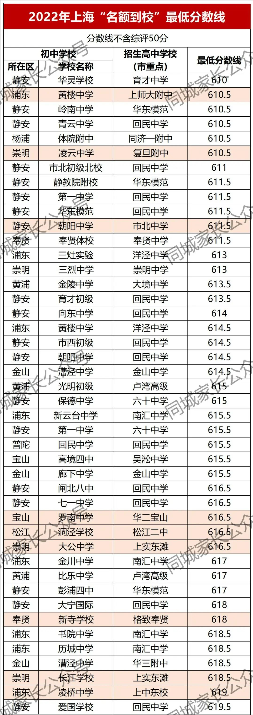 2022年上海中考名额分配到校录取中有22市重点高中在部分初中的录取分数线低于620分!(不含综评50分)静安区成为最大赢家