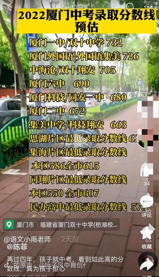 不仅如此,有家长表示孩子753分排名全市402名,岛外760分要进厦门一中可能都悬!
