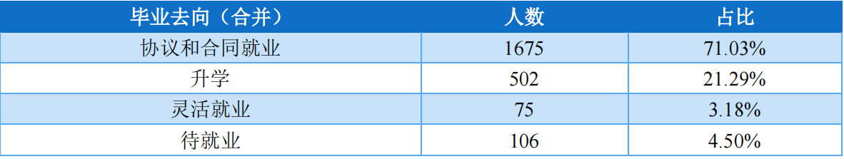 对于大家关心的深造问题,就业质量报告也给出了一个数据:2021届本科毕业生中,共有 432 人选择国内升学深造,升学率为 18.32%;共有 70 人选择出国(境)深造(2.97%)。