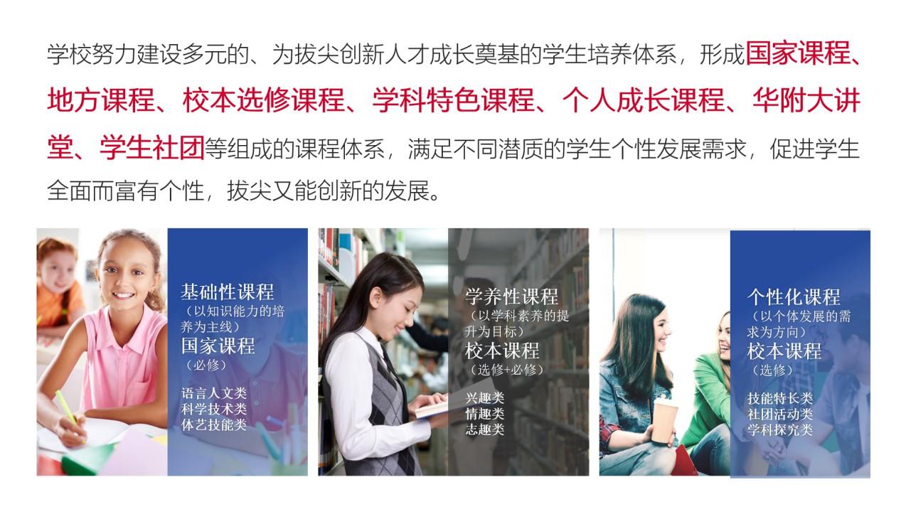 学校提供小班化、特色化、导师制等一流的教育,成就教师和学生幸福的人生。这里是求学问道的乐土,这里是国内外名牌大学的起点,这里是未来精英的摇篮。目前学校已成功招收七年级学生,高中部也将在2020年9月正式开学,一切美好都将向东莞华附学子开启。