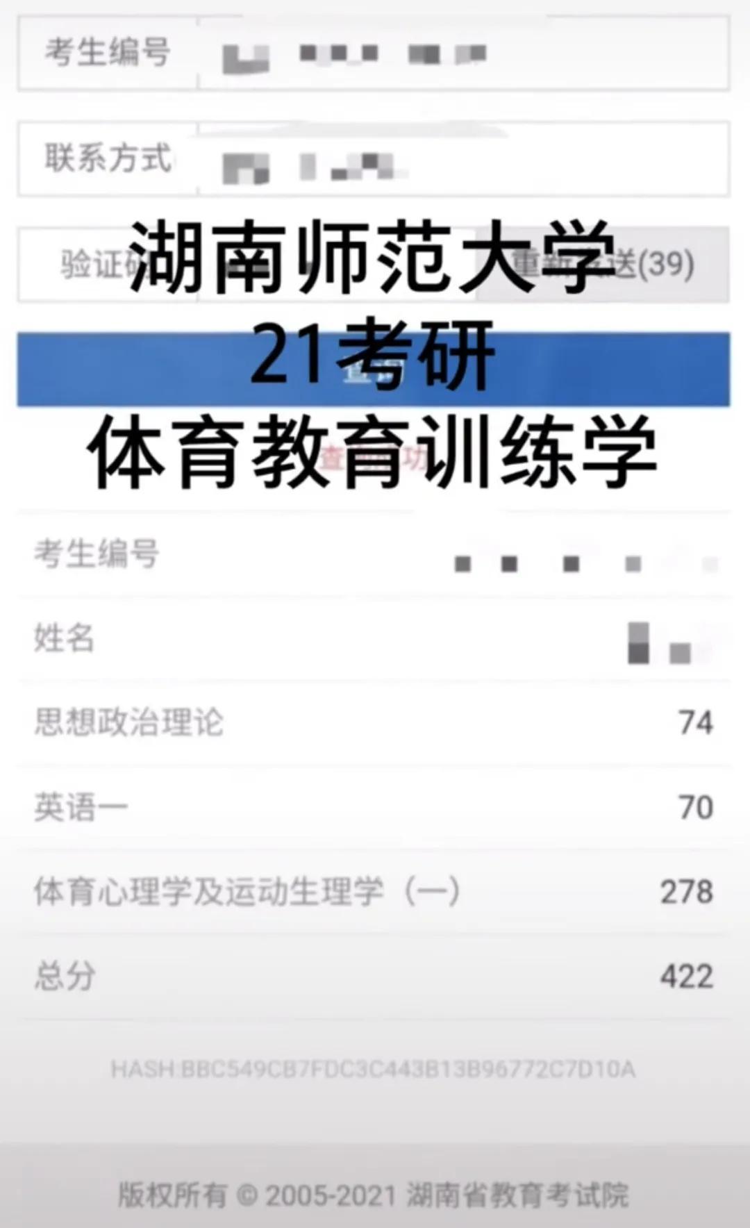 根据网络消息得知,报考了2021年湖南师范大学体育学院体育教育训练学专业的某位考生考出了422分的好成绩。如果该消息属实,这将成为该院自招收硕士研究生以来初试成绩之最。