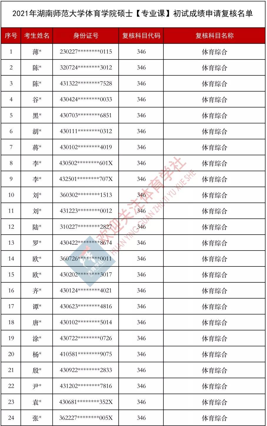 3月4日,湖南师范大学研究生院发布2021年硕士研究生初试成绩申请复核名单!根据名单显示,共有663人提交了3571条申请。其中,体育学院共有57人提交了57条专业课复核申请。相比去年的28人,翻了一番。具体名单如下: