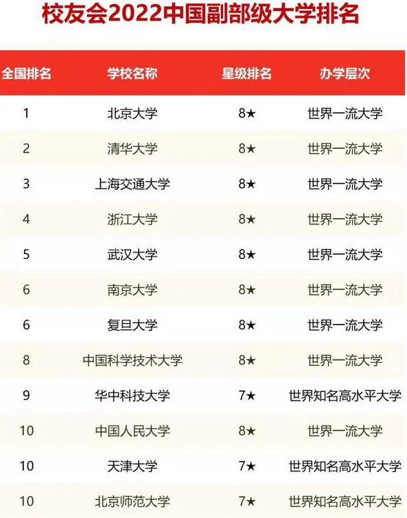 所谓副部级高校便是指中管高校,学校的校长为副部长级别,不论是办学层次还是实力等诸多方面,在国内都是数一数二的,而国内副部级高校排名大洗牌,学生们在报考时需做好心理准备!
