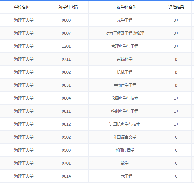从第四轮学科评估结果中我们可以看到上海理工大学有3个B+学科,3个B学科,3个C+学科.作为一所双非高校,上海理工大学的实力是值得瞩目的。