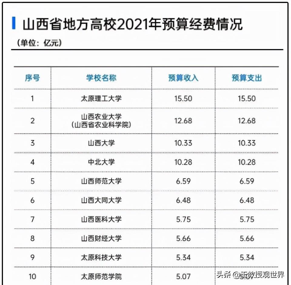 虽然学校比较低调,但在重型机械行业首屈一指。该校重型机械教育部工程中心主任黄庆学教授是中国工程院院士,在第四次学科评估中,太原科技大学拿到1个B类学科,2个C类学科上榜,其中最高评级为B级的机械工程,能够在强手如云的机械学科获得B级,实力不俗。但这也恰恰是太原科技大学的硬伤,专业面过于狭窄。加上并非山西土生土长的学校,受重视程度不够。2021年预算仅5.3亿元,在省内排第9,甚至低于山西财经这样的文科高校。