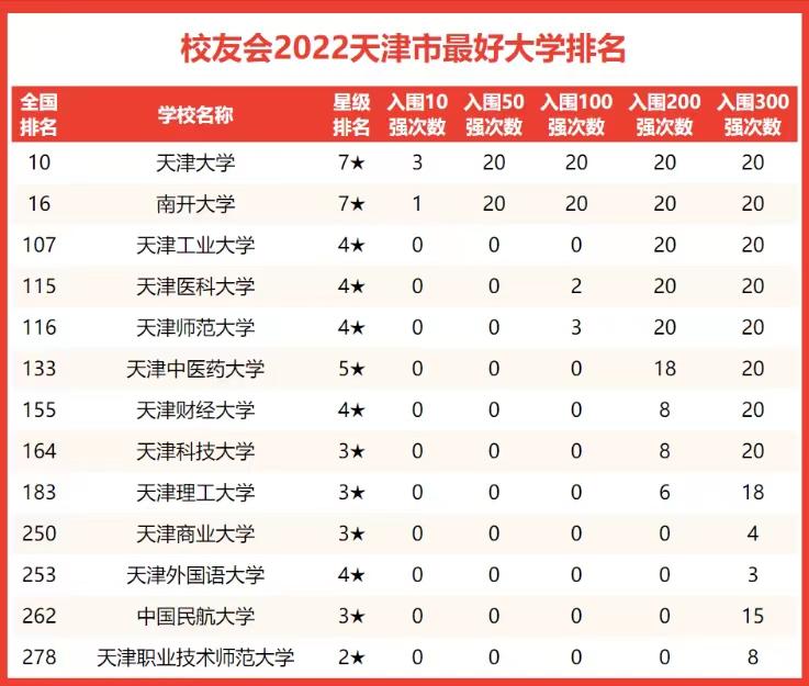 那么对于天津市高校而言,哪些高校更值得2022年高考考生和家长选择报考呢?哪些高校在2022年的表现更优异呢?下面,我们就来看一看天津市高校2022年综合实力排名,看一看你的学校有没有上榜?仅供考生和家长参考。