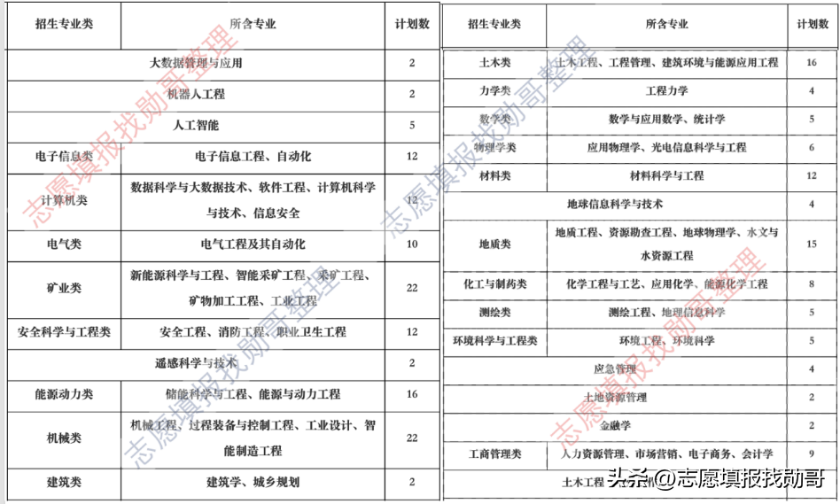 个人经验,所有的暴跌首先要从所投放的专业分析入手。下图为2022年中国矿业大学在陕西的招生专业。