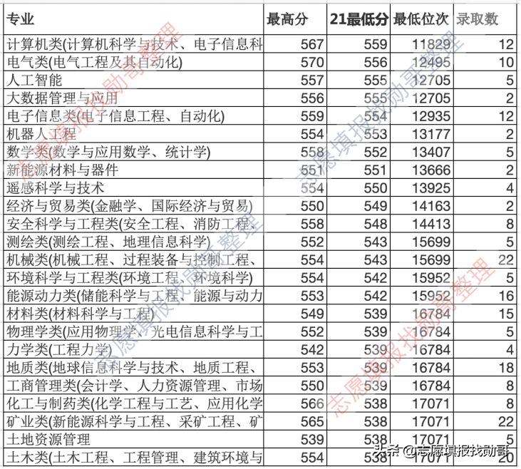2018-2021年录取走势表明,1.7万位的考生,如果压线进中国矿业大学,那基本录上的就是这些“被选择性忽视”的专业!下图为21年专业录取数据,从这份数据来看,高分专业,与中国矿业大学优势专业关联不大,为计算机专业,电气类、人工智能和大数据专业,而低分垫底的专业则为土木类、矿业类、化工与制药类等专业。