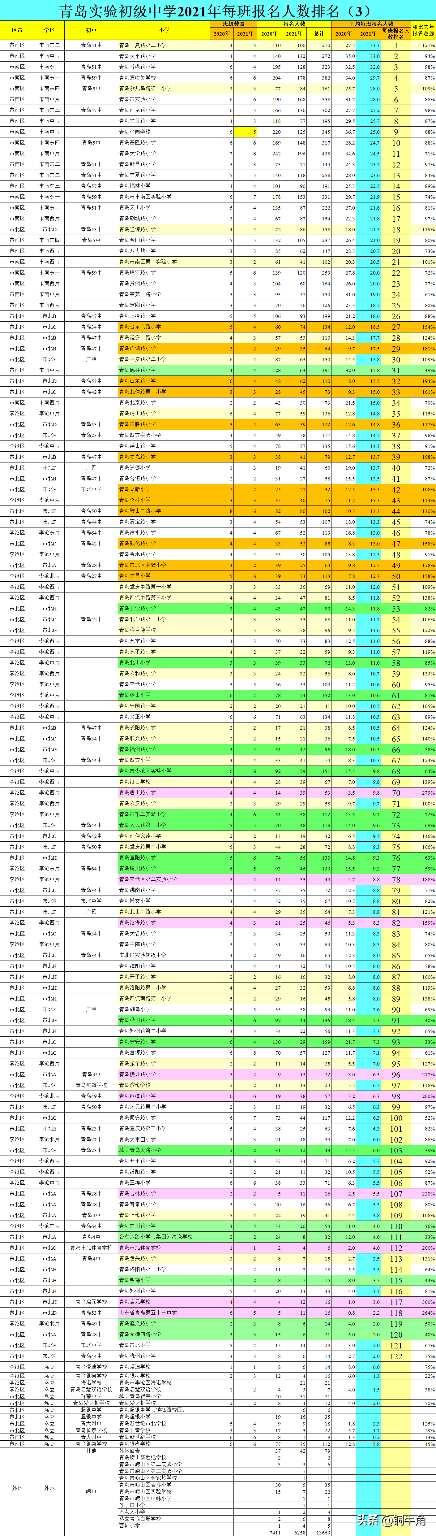 我们看一下《青岛实验初级中学2021年每班报名人数排名(3)》,可以发现: