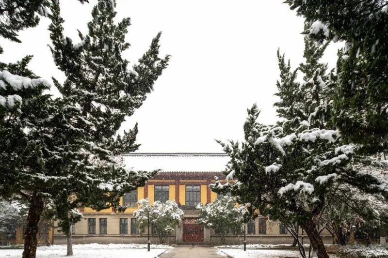 才感秋来,忽已冬至。微微的冷风簌簌吹动着冬日余温,南师校园也开始银装素裹。在白雪的装扮下,南师随园显得沉静而温婉,仿佛正在静静诉说着曾经的岁月。茫然一片的世界里,点点绿意不经意间成为雪景中一道靓丽的风景线。静默矗立,望眼碧瓦飞甍、雕梁画栋,仿佛闯入了如画般的世界,脚步也不禁放慢起来。