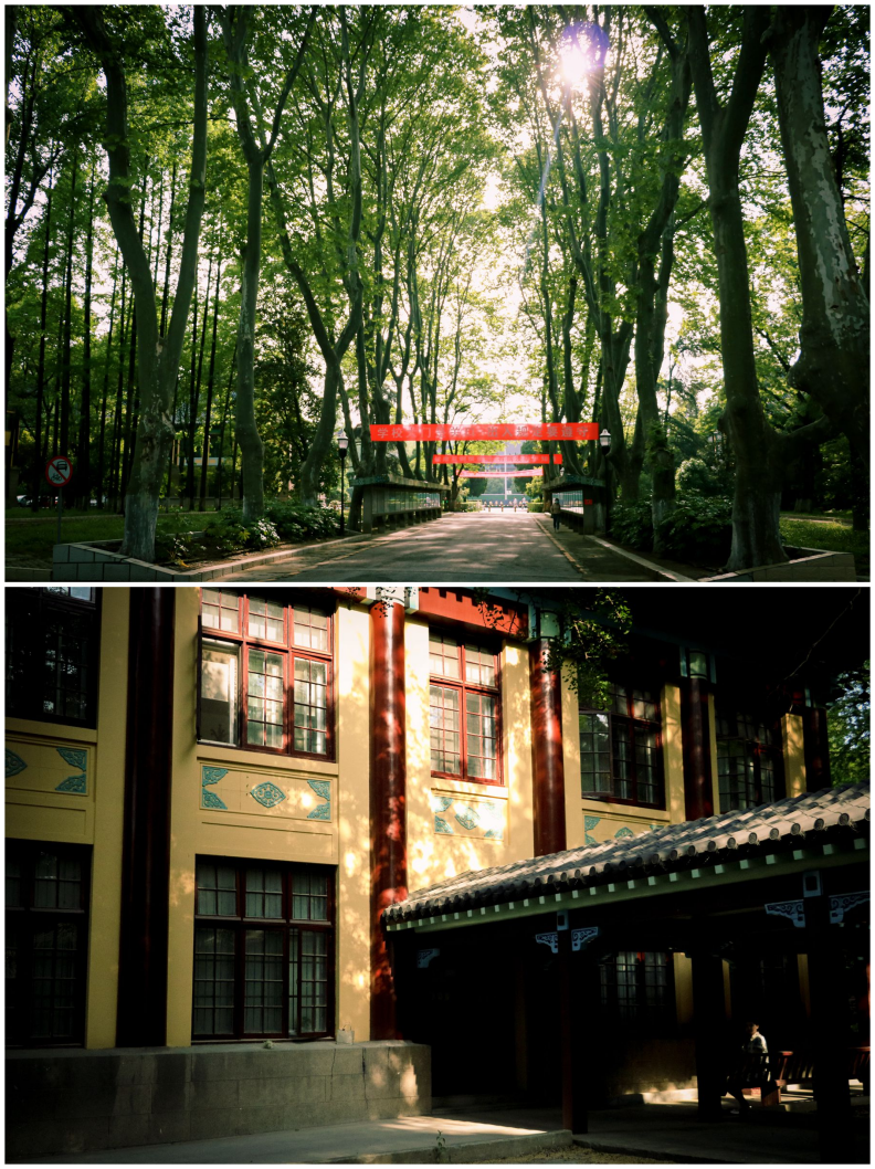 夏天的序章在蓊郁浓茵中酝酿,伴着声声蝉鸣,更显肆意和张扬。漫步绿荫重重的校园大道,微风轻轻吹过,带动静默的树叶,泛起斑驳的倒影,彰显出夏日校园的宁静幽美。飞檐翘角,小桥流水,高大古木,深深浅浅的绿意映衬着随园的古典建筑,交织出夏日的蓬勃生机。