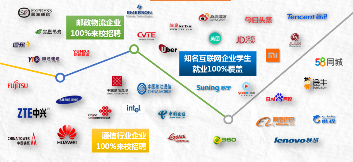 学校获教育部"全国创新创业经验典型高校",2018年举办大型招聘会14场,专场招聘会589场,来校招聘单位1728家,提供招聘岗位近60000个。本科生就业率多年来保持在90%以上,2018年近80%的毕业生进入信息传输、软件、信息技术服务和"互联网+"新业态行业。"3+1"(Linux)创新实验班创设11年来,就业率一直保持100%。2018年,"3+1"(Linux)创新实验班近97%的毕业生签约国内独角兽公司,入职年薪都在20万+。《陕西高校及专业毕业生就业质量指数评价报告》 显示西邮就业质量指数排陕西省50所本科高校第7名,省属高校第2名,毕业生平均月收入排陕西省50所本科高校第3名。