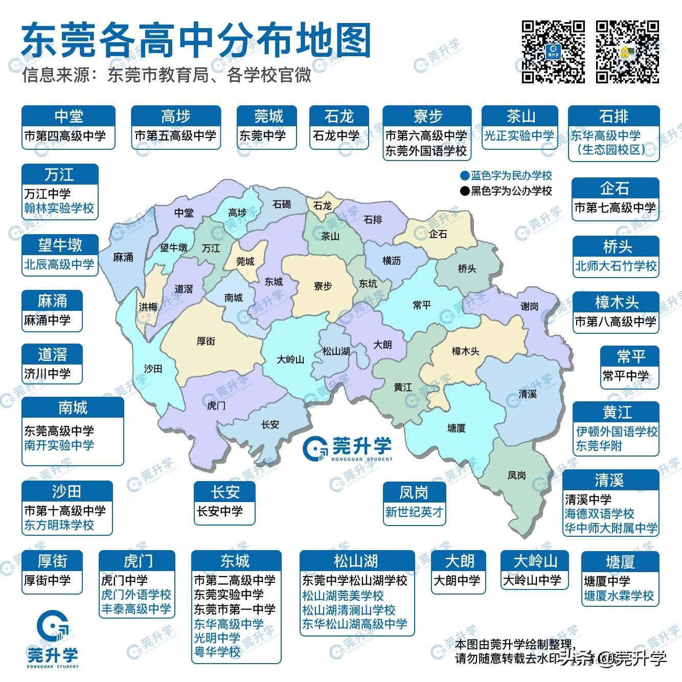 东莞各高中分布地图如下
