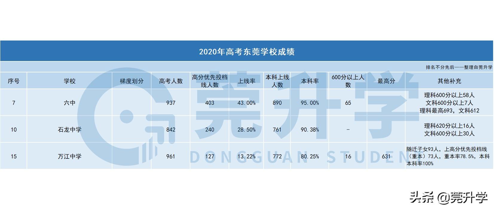 其余3所学校未通官方的渠道发布具体成绩,按民间流传的成绩划分,莞外>高级>实验;
