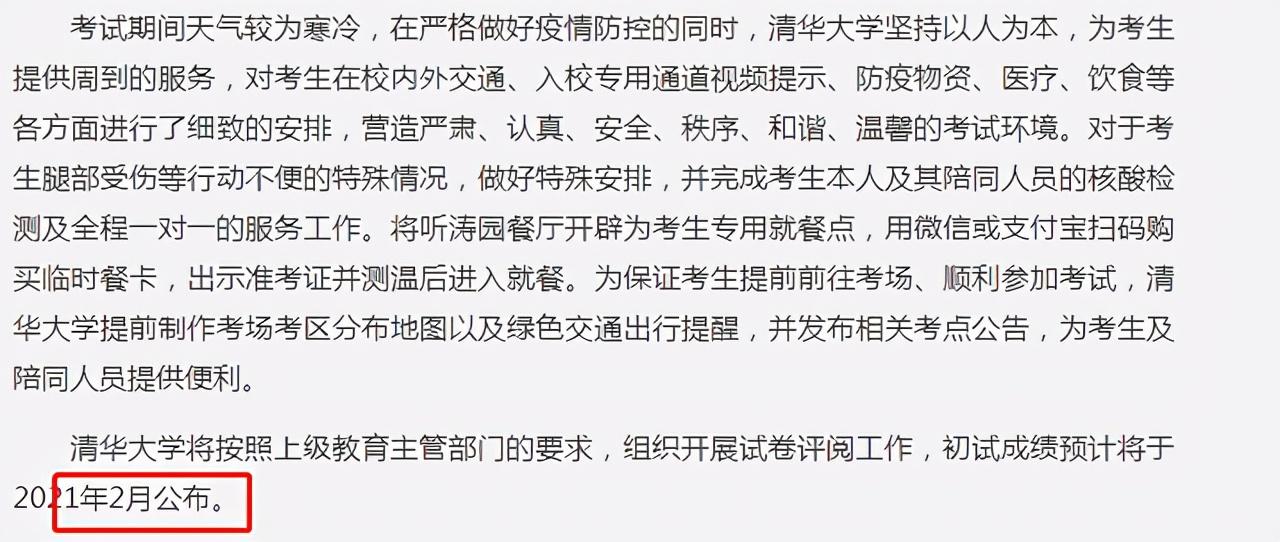 北京市的清华大学在之前发布的文章中提到:初试成绩预计于2021年2月公布。