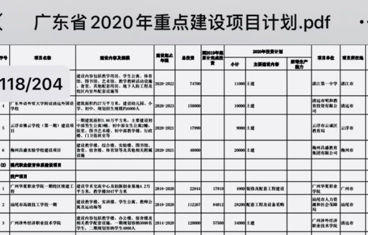 近日,《广东省发展改革委关于下达广东省2020年重点建设项目计划的通知》对外公布。重点项目1230个项目,总投资5.9万亿元,年度计划投资7000亿元,安排开展前期工作的省重点建设前期预备项目868个,估算总投资3.4万亿元。广州涉外经济职业技术学院汤塘新校区建设项目榜上有名。