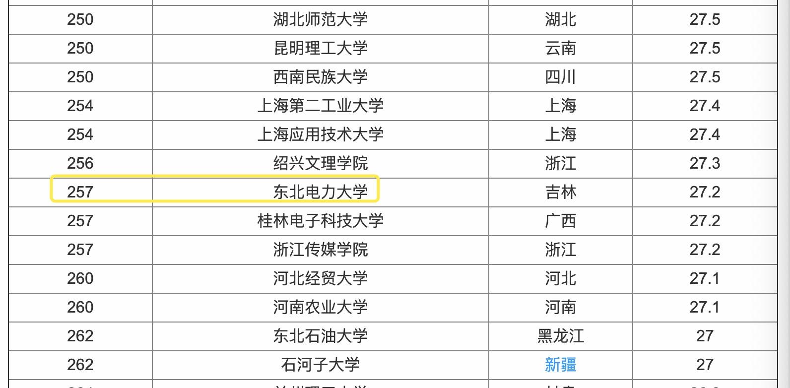 软科2019中国大学排名:257名