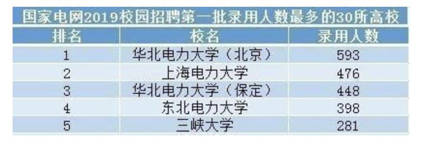 2019年国家电网第一批录用,各高校招聘录取人数: