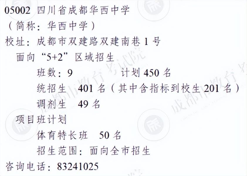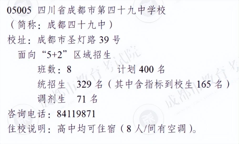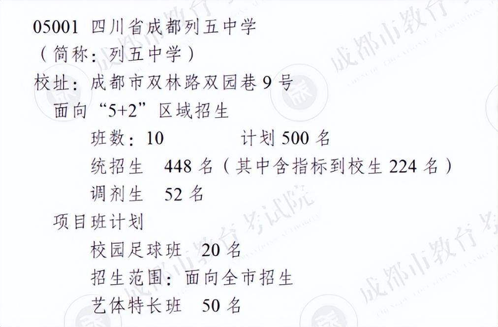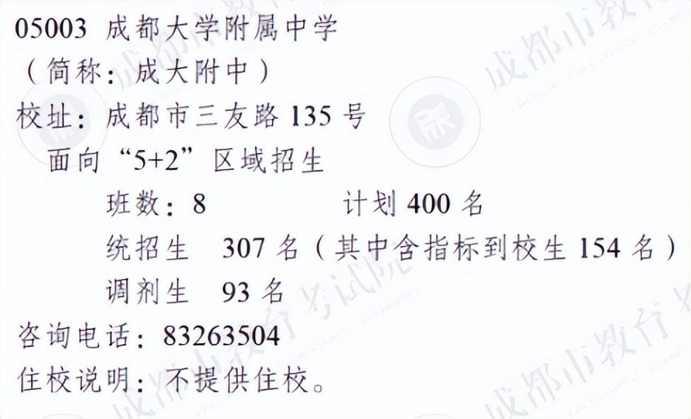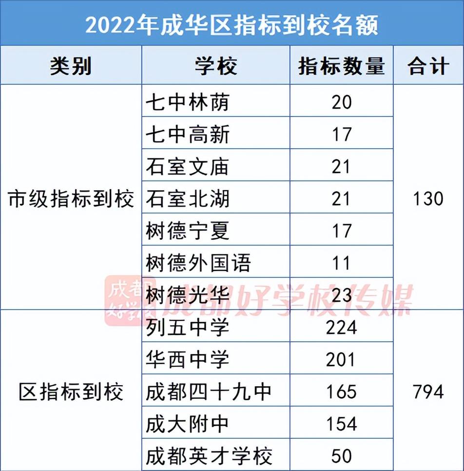列五中学、华西中学、四十九中、成大附中都有区指标到校。
