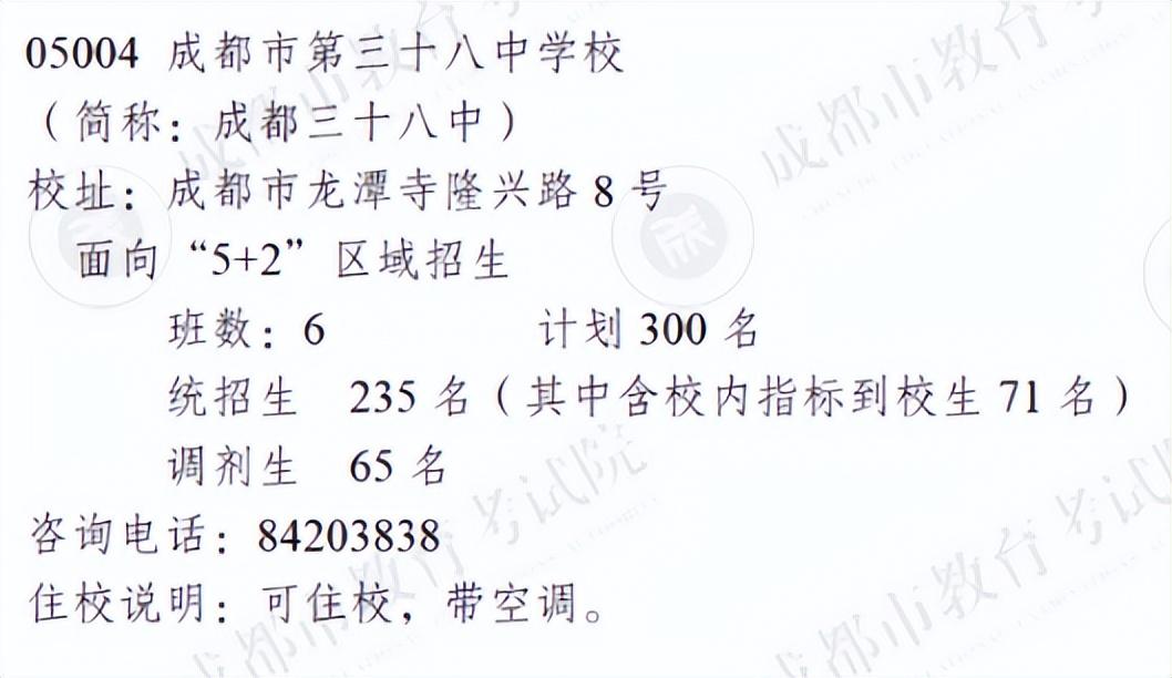 还有2所高中学校,成都三十八中和成都实验学校,没有区指标,但都有校内直升,分别有71人、50人,也是不用参加中考,直接直升高中。