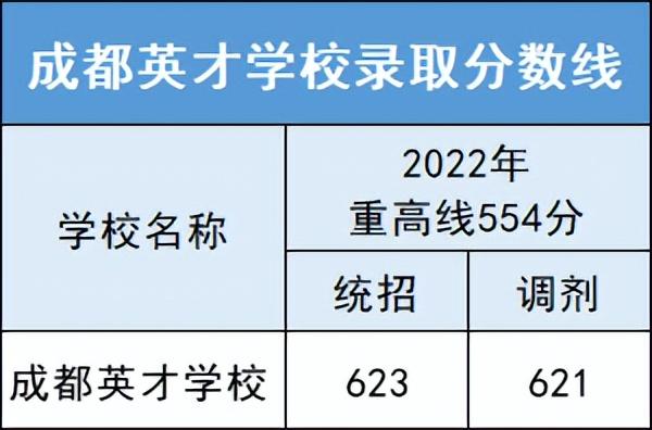 英才学校高中首年招收录取分数线达到623分,超重点线69分,直接排在第11位,跟在四七九三校七区、石室天府、教科院附中、川师大附中之后。