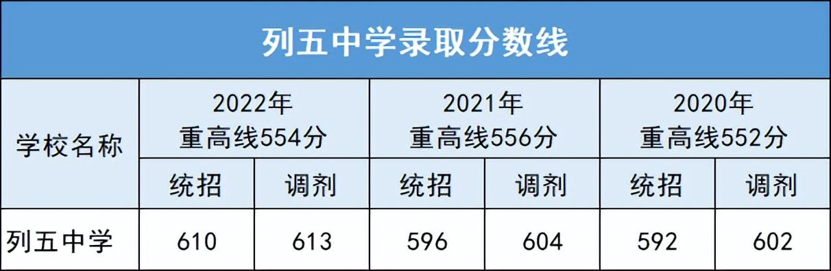 2020年、2021年,统招线都超过重高线40分,而2022年,统招线超出重点线56分。2023年想要报考列五中学的学生可以参考这个线差来预估自己能不能报。