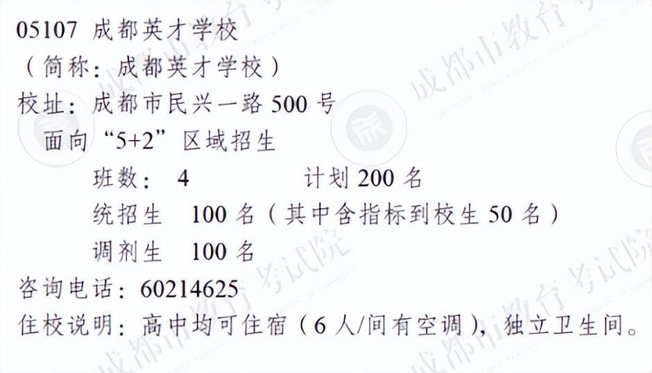 成都英才学校2022年第一年开学,总计划招生200人,拿出50个名额用于区内指标。