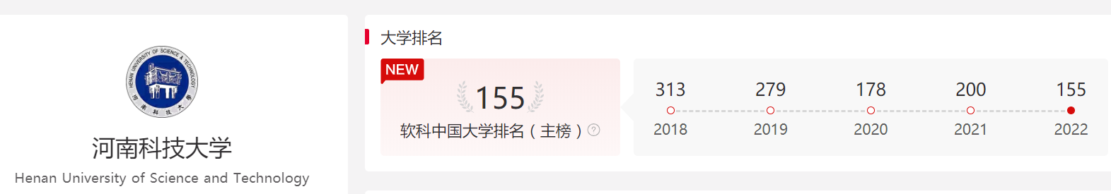 软科大学榜单中,河南科技大学的排名一直在前进,从2018年排名313名,到如今的155名,进步很大。