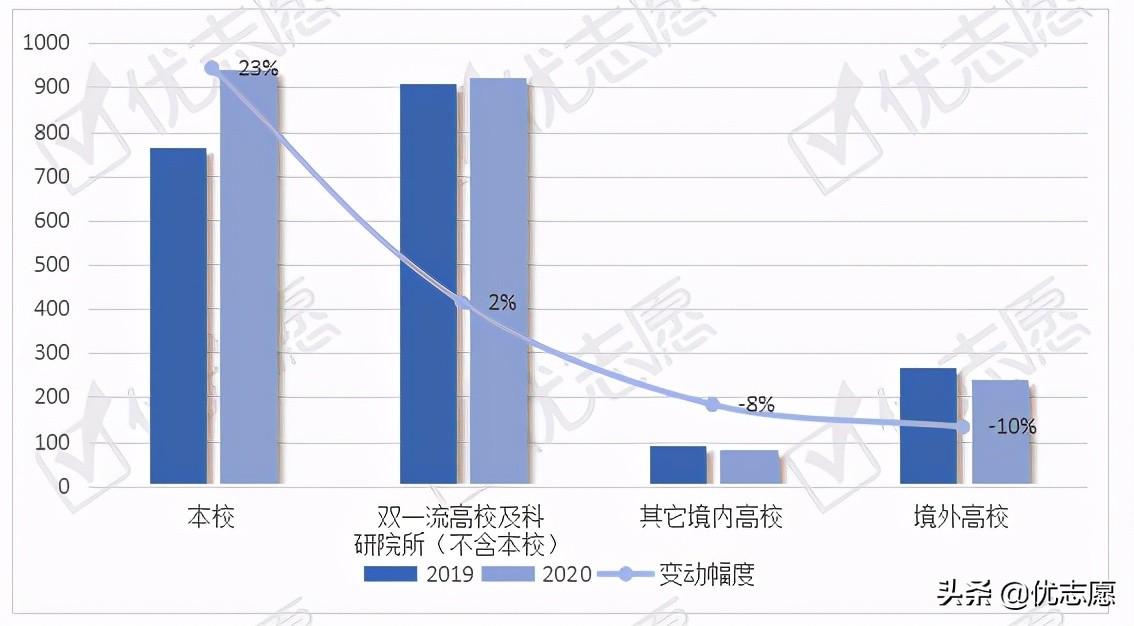 2020年选择本校读研的本科毕业生人数上涨23%,本校升学难度较低,2020年有更多的本科毕业生选择本校升学。