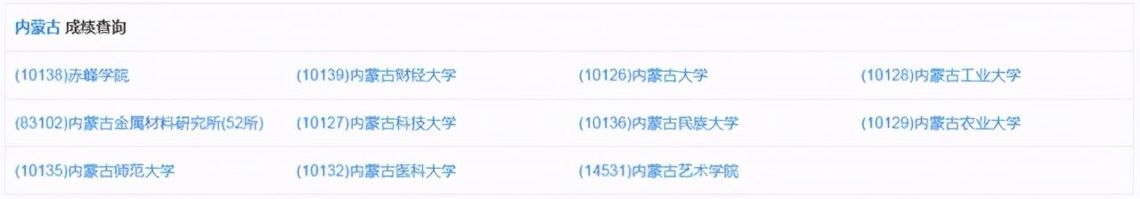 (注:标蓝为内蒙古已开放成绩查询的院校)