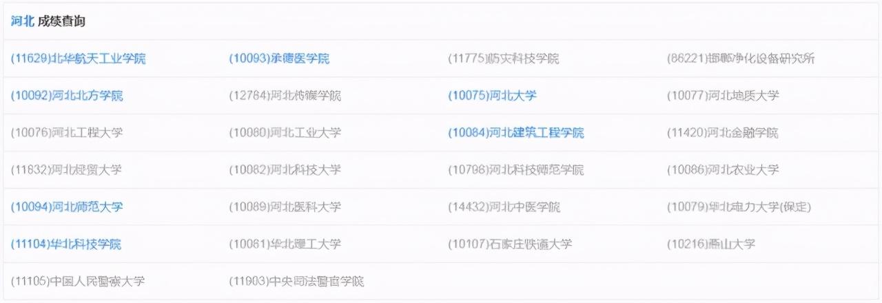 (注:标蓝为河北已开放成绩查询的院校)