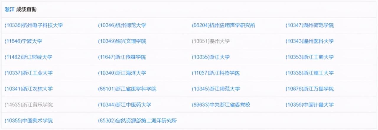 (注:标蓝为浙江已开放成绩查询的院校)