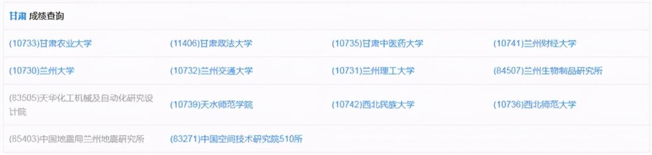 (注:标蓝为甘肃已开放成绩查询的院校)