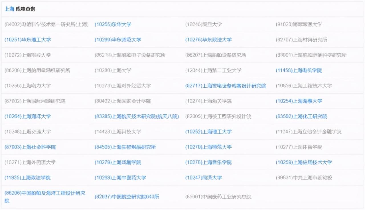 (注:标蓝为上海已开放成绩查询的院校)