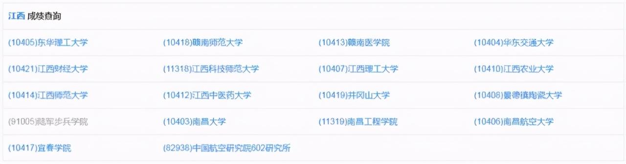 (注:标蓝为江西已开放成绩查询的院校)