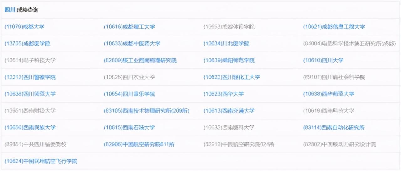 (注:标蓝为四川已开放成绩查询的院校)