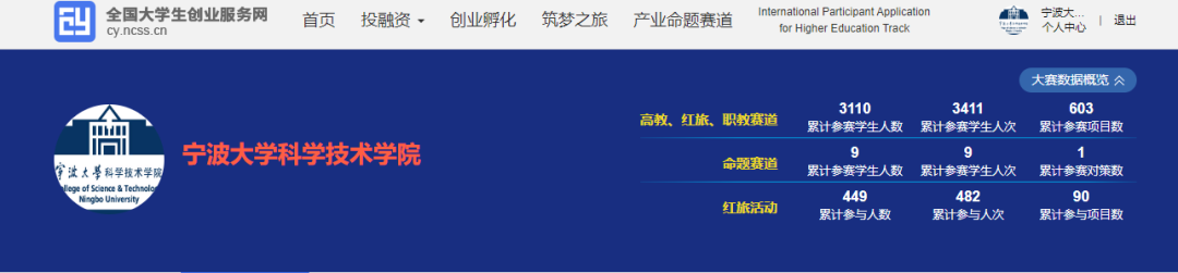 宁波大学科技学院自今年4月大赛启动以来,积极组织学生参与,各二级学院、相关部门高度重视参赛项目的挖掘、孵化和指导,学生们积极报名参赛,其中高教主赛道参赛人次为3162人,共有558支队伍;“青年红色筑梦之旅”赛道参赛人次为248人,共有45支队伍。校赛选拔32个种子项目,最终推荐省赛27个项目,入围省级决赛6项,省赛中斩获2金3银7铜成绩。
