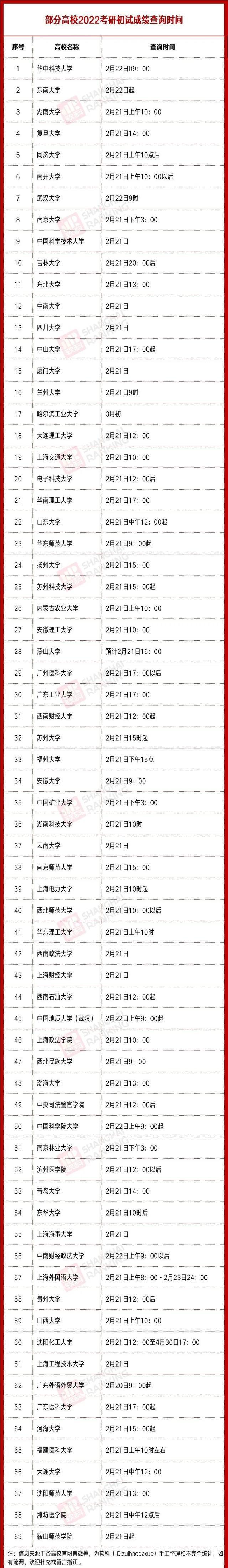 下图是软科统计出来的各高校2022年初试成绩的查询时间,仅供参考!